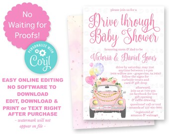 Pink Beetle Drive By Baby Shower Invitations D580 Baby Printables - Twice the love, twice the joy twice the.