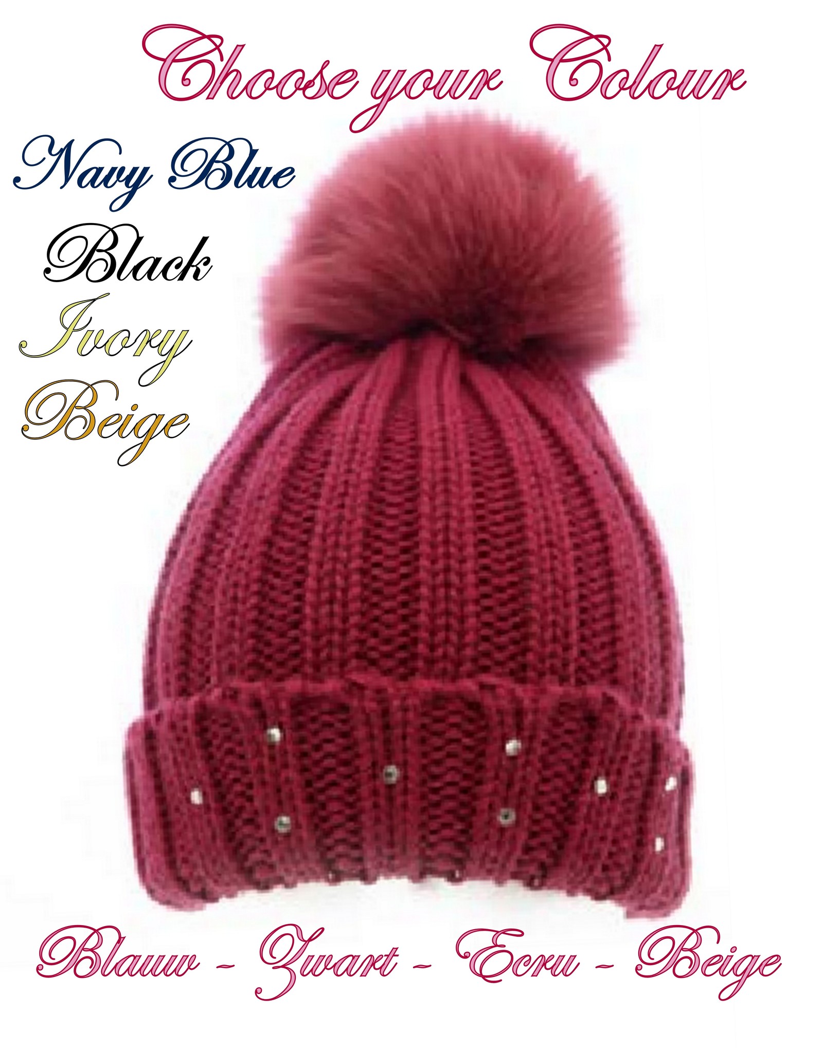 Meisjes Muts Pom Met Strass Kies Je Kleur Petoetje - Zacht gesponnen 100 procent acryl.