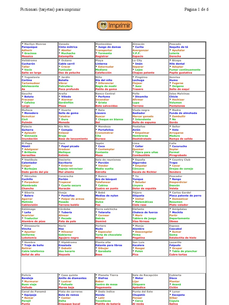 Tarjetas Para Imprimir - Pictionary es un celebre juego de mesa creado por rob angel que consiste en adivinar una palabra a traves de un dibujo hecho en papel.