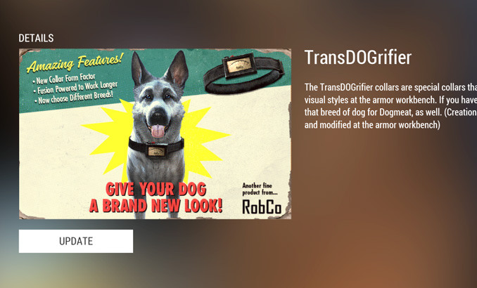 Trending Transdogrifier Choose from 4 new visual styles. Transdogrifier : Fallout 4:how to use the transdogrifier(creation club content).